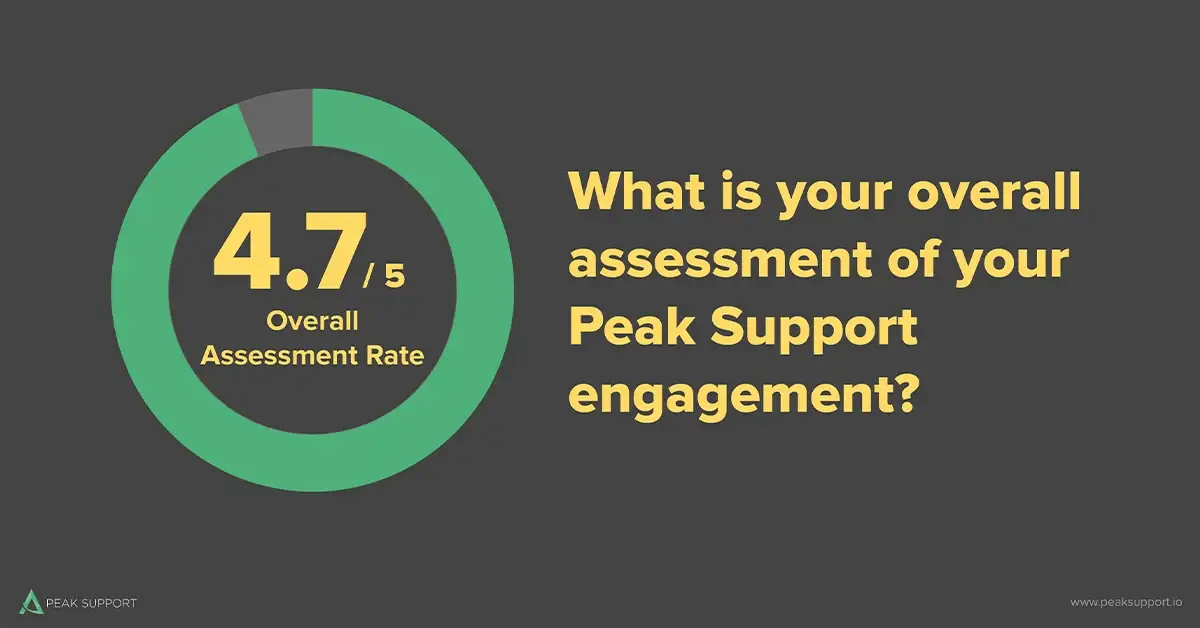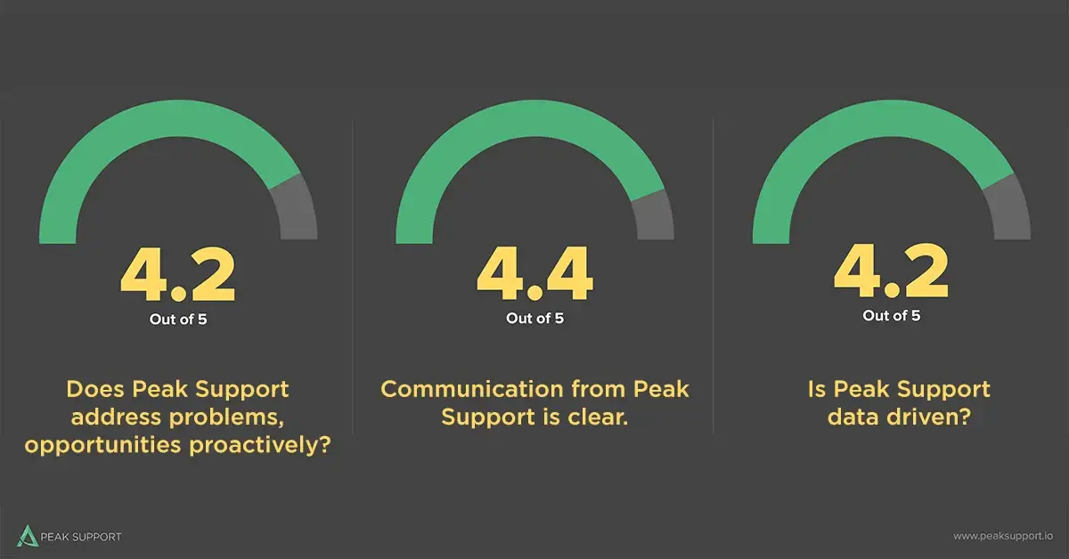 We also survey our clients about their overall experience with Peak Support. In 2020, we scored a 4.7 out of 5, up from 4.5 the year before.