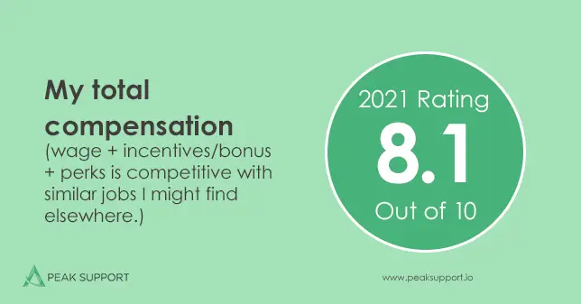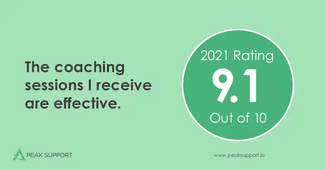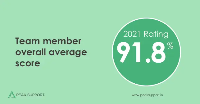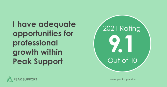 We received a 9.1 out of 10 in this category which is a few points higher compared to previous years. Peak Support offers promotions frequently and we have a dedicated “Promotions” Slack channel where we celebrate all the upward movement on our teams! While we hire internally and externally for all our leadership positions – we love internal Team Members getting a chance to move up!