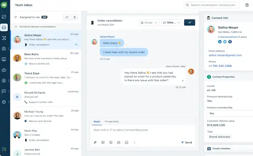 Chats within Intercom can be manually assigned to teams, specific chat agents, or distributed in a round-robin fashion. Agents also have the option to effortlessly translate text, adjust tone, and correct drafts with conversational AI.
