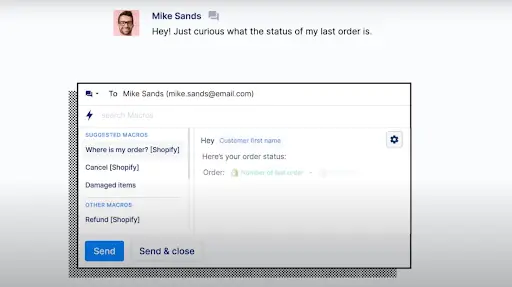 - Macros: Macros are essential for quick and efficient responses in chat interactions. Look for apps that allow you to equip the team with templates for greetings, handoffs, and common queries that expedite issue resolution. Some tools call these canned responses, templates, or shortcuts, but the idea is the same regardless of the name on the label.