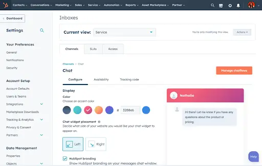 While HubSpot is mostly known as a CRM tool catering to sales and marketing teams, it also offers a robust selection of customer service tools with a live chat channel.