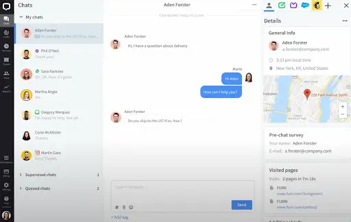 The agent interface is simple but it has everything needed for successful chat handling – customer details, internal notes, and assignment rules.