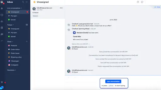 One of the key features of LiveChat is its message sneak peek, which allows agents to preview text that customers are typing before it’s sent – boosting response times. Additionally, you can configure smart assignment flows to streamline the management of high-volume chat teams.