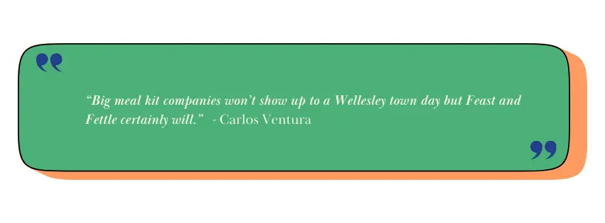 “When people see you in person, it’s a tangible differentiator. Big meal kit companies won’t show up to a Wellesley town day but Feast and Fettle certainly will.”