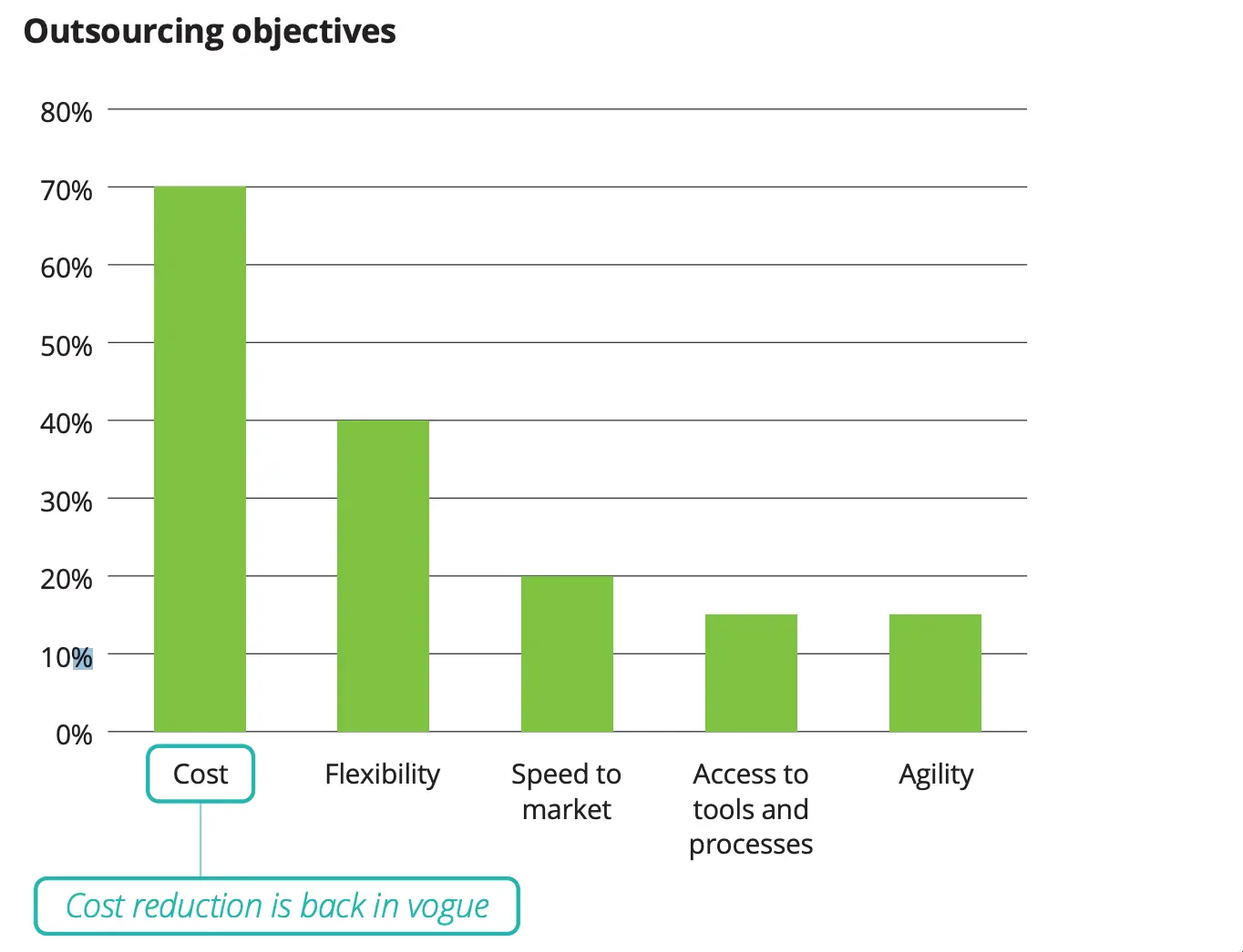 - Reduce costs while increasing efficiency: There’s a reason why outsourcing is recognized as a flexible way for companies to save money – Deloitte found that 70% of interviewees mentioned cost reduction as the primary reason for outsourcing. The impact of COVID-19 played a key role here, as an uncertain economic environment makes businesses focus even more on the numbers.