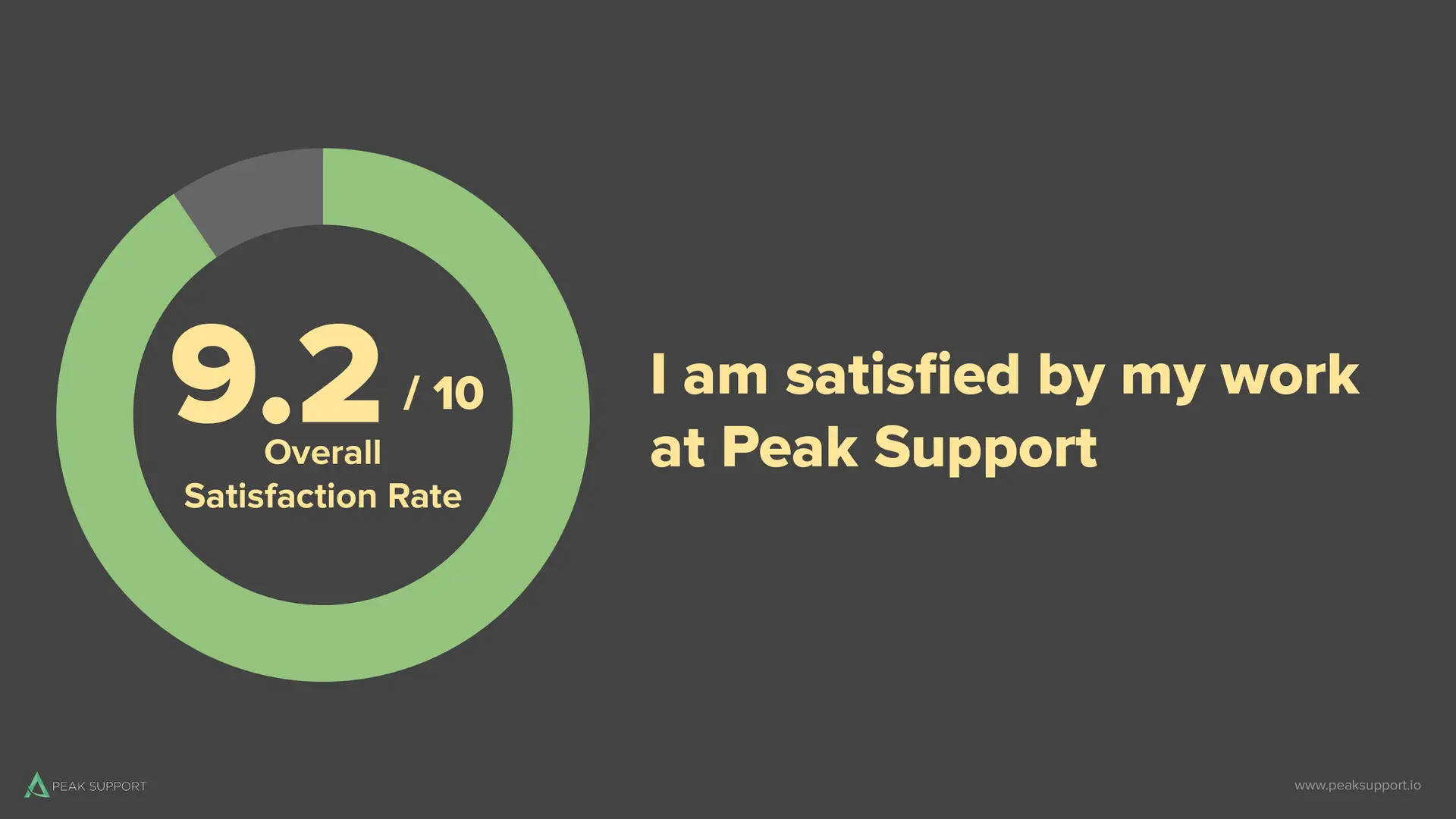- “I am satisfied by my work at Peak Support.”