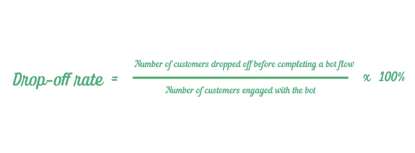 You can calculate your chatbot drop-off rate by dividing the number of users who fail to complete a specific flow by the number of those who started it, and then multiplying by 100%.