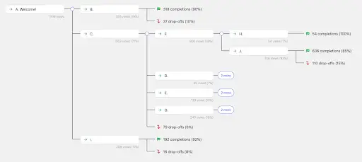 Most chatbot tools can show the drop-off rate for each step of the flow, allowing you to pinpoint weak answers and make targeted improvements.